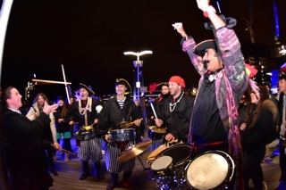 | Arrrrrh, Arrrrrrrh, Arrrrrrrrrh! Blow me down & shiver me timbers! These buccaneers have got their land legs & are creating a percussive storm. With drumming, swash buckling, knife juggling, sword swallowing & romantic charm, these pirates of percussion will keep your feet a tapping & your thighs a slapping arrr... The Pirates of Percussion are known to roam the ports in a crew of five but can be seen in smaller crews. These highly energetic, audience interactive pirates are ideally suited for roving performances at festivals, product launches, corporate functions & nautical themed events. |